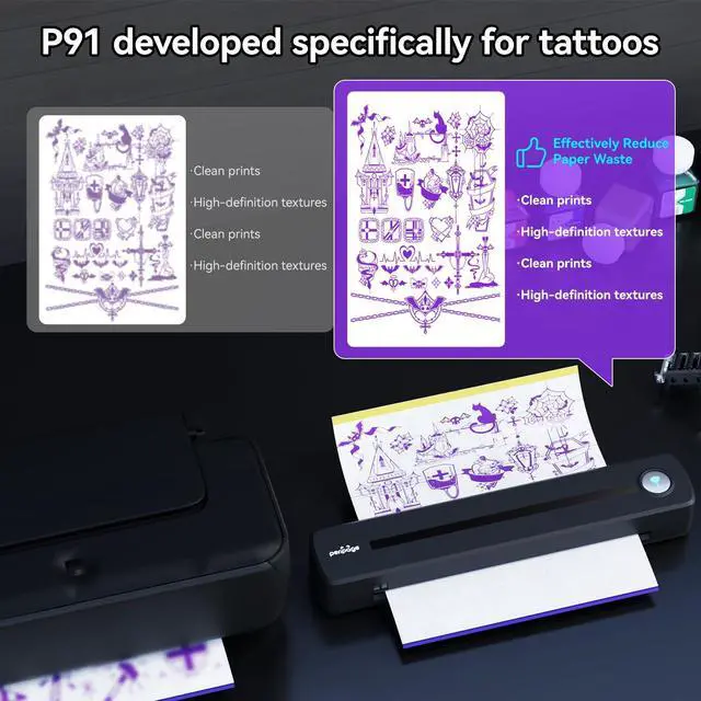 PeriPage P91 Wireless Tattoo Stencil Printer, Thermal Tattoo Machine with Free Transfer Paper