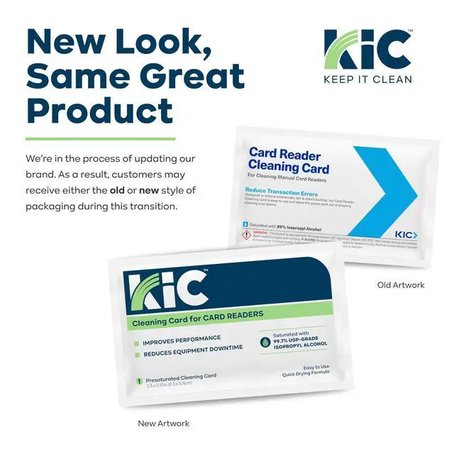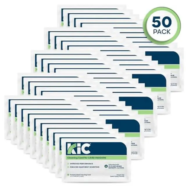 KICTeam - Cleaning Cards for Swipe Card Readers, Time/Badge Readers, Hotel Door Readers & More (50 Cards) - Presaturated with Quick Drying Solution - Made in USA