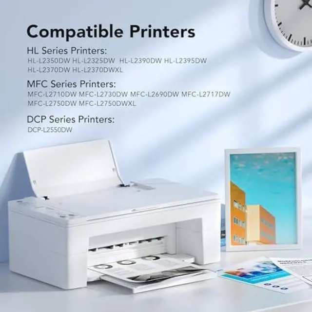 Compatible Printers: Compatible TN 760 toner cartridges for printers work with DCP-L2550DW, HL-L2325DW, HL-L2350DW, HL-L2370DW, HL-L2370DWXL, HL-L2390DW, HL-L2395DW, MFC-L2690DW, MFC-L2710DW, MFC-L2717DW, MFC-L2730DW, MFC-L2750DW, MFC-L2750DWXL Printers.