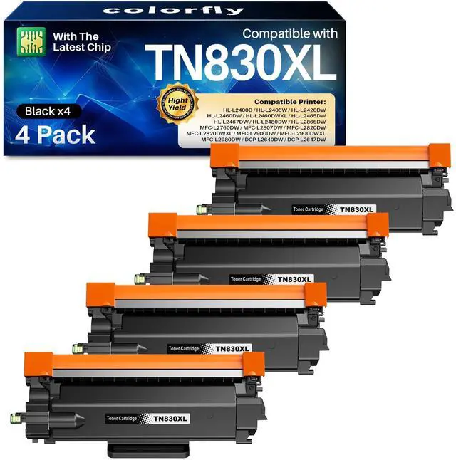Product Name: colorfly TN830 TN830XL black toner cartridge set 4 pack high yield replacement for tn830XL tn830 tn-830 830/XL/V/R Toner(This is NON-OEM product) ^^