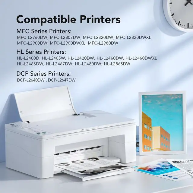 Compatible for Printers: Compatible for Brother HL-L2460DW, HL-L2405W, DCP-L2640DW, HL-L2400D, MFC-L2820DW, HL-L2420DW, HL-L2460DWXL, HL-L2465DW, HL-L2467DW, HL-L2865DW, HL-L2480DW, DCP-L2647DW, MFC-L2760DW, MFC-L2807DW, MFC-L2820DWXL, MFC-L2900DW, MFC-L2900DWXL, MFC-L2980DW printer.