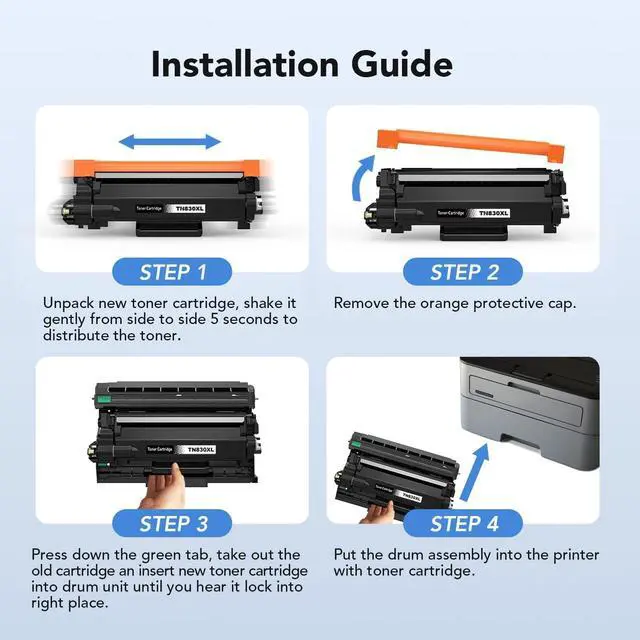 High Performance: Black TN830XL Toner Cartridge Delivers Sharp Texts and Stable Compatibility, No Fading, No Leakage, No Streak.