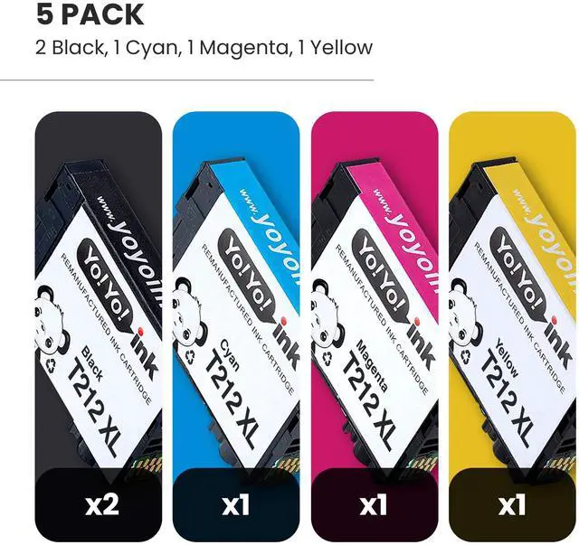 Listing Includes - 5 PACK 212 XL (2 Black, 1 Cyan, 1 Magenta, 1 Yellow) Est Page Yield - Black (500 pages), Color (350 pages) ^^ Compatible Printers - Epson Expression XP 4100 XP 4105 Small-in-One Printer, WorkForce WF 2830 WF 2850 All-in-One Printer ^^
