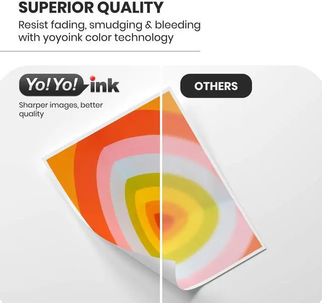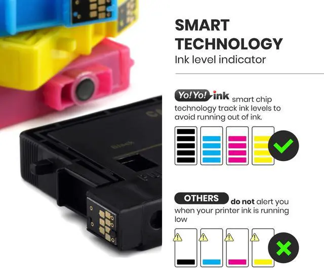 SUPERIOR QUALITY: Resists fading, smudging and bleeding with YoyoInk Color technology to allow you to print true-to-life photos and images and laser-quality text which withstand fading for decades. Benefit from our smart chip with ease to track ink levels in your printer to AVOID running out of ink. Built to meet or exceed the original specifications. ^^ 2 Year No Hassle Warranty; Shop with ease of mind with our extended warranty program on this multipack