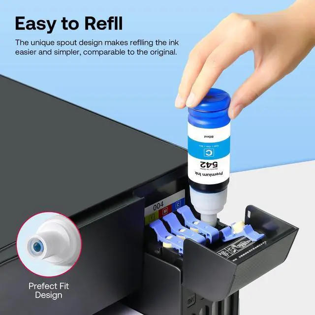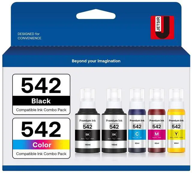 Compatible Printers: 542 Pigment ink Compatible Epson 542 High Capacity Refill Ink Bottle Replacement for ET-5150, ET-5170, ET-5180, ET-5800, ET-5850, ET-5880, ET-16600, ET-16650 Printers.
