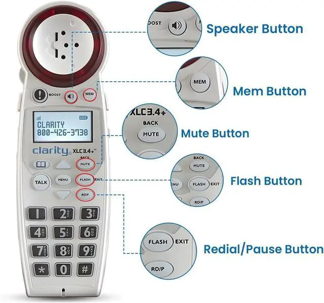 ^^ LOUD RINGER: The Clarity XLC 3.4 + has a 95dB extra-loud ringer and visual ring indicator, ensuring that calls can be heard - or seen - even in noisy environments.