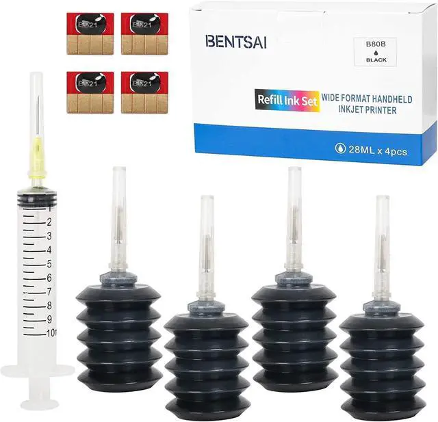 Ink Compatibility: Use this refill ink on EB21B Black ink cartridge for use with Bentsai handheld inkjet printer B30 and B80.