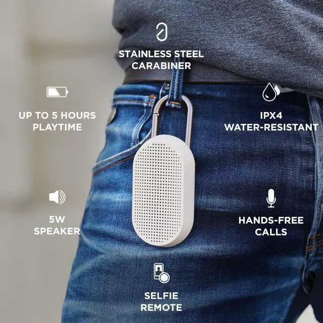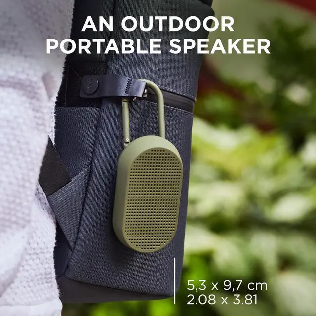 OUTDOOR SPEAKERMeet Mino T the latest, and most outdoorsy member of the Mino family. Made for exploring, use its carabiner to clip the speaker to items like your bag or bike. Built with a considered design in mind, this speaker is also a stand alone modern interior piece that you can proudly display indoors. SOUND THAT MARVELSThe Mino T has been carefully engineered with a passive bass system. This built-in technology allows for an overall quality listening experience, so you can enjoy a more balanced, fuller sound on the go.