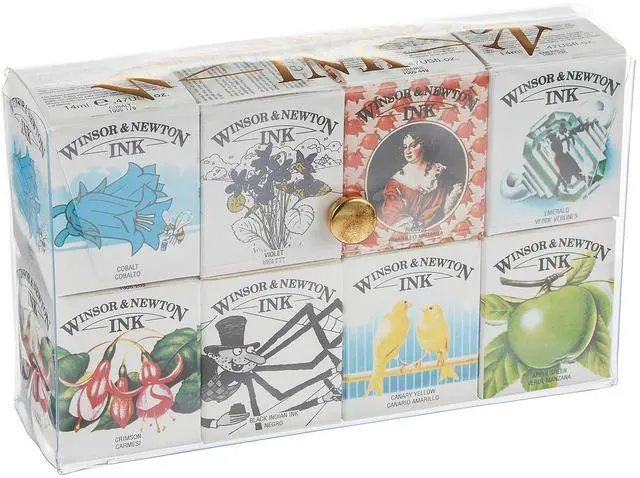 Winsor & Newton Drawing Ink, 0.5 fl oz (14 ml), Set of 8 ColorsSet of 8 colorful drawing inks. This is a set of 8 drawing inks that have been loved by illustrators and designers. Can be used directly from the bottle. Can be diluted with water for a light color, or a thick coat for a glossy finish. Contains dyes, so colors may fade if exposed to light. To avoid the separation of the dyes and solutions, always use distilled water when diluting. Windsor & Newton W&N