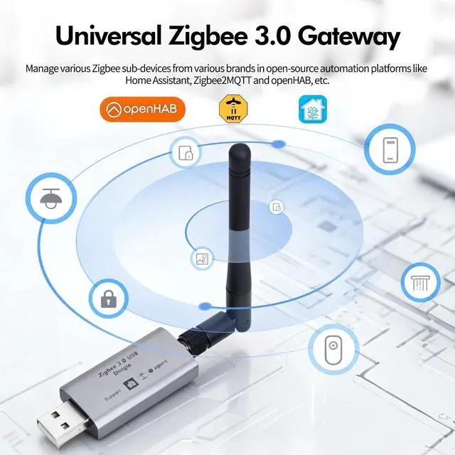 Universal ZigBee Gateway: Zigbee 3.0 USB dongle Plus is a universal Zigbee USB flash drive. It can be used as a universal Zigbee gateway in Home Assistant or other open source platforms through Zigbee 2MQTT, controlling all your Zigbee sub devices locally, so you don't need to invest in Zigbee hubs for different brands, you only need one universal gateway - eMylo Zigbee 3.0 USB Dongle Plus!