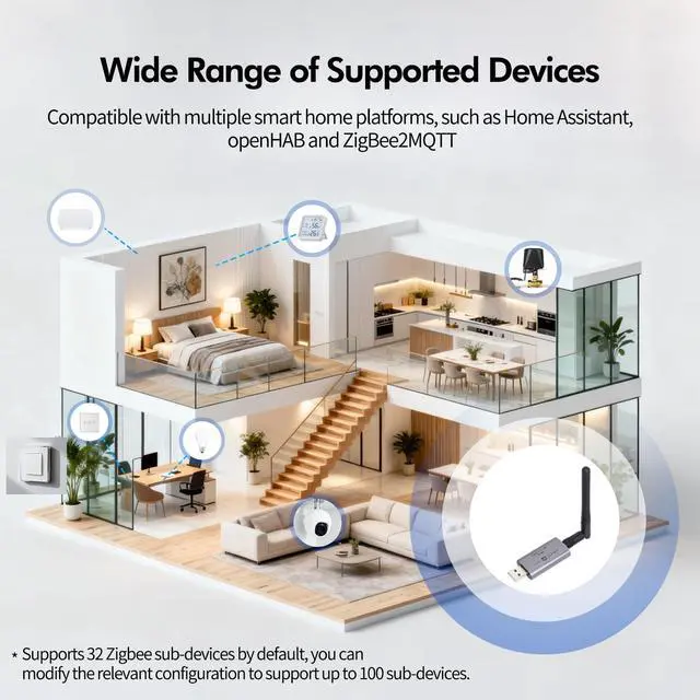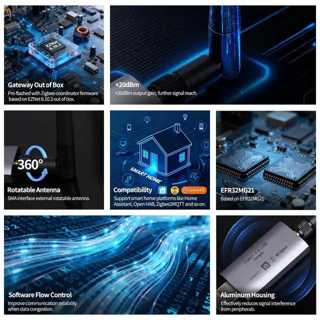 Multi-platform Support: Pre-flashed with Zigbee coordinator firmware based on EZNet 6.10.3 out of box, works with Zigbee2MQTT, openHAB and supports Zigbee 3.0 devices. Compatible with most smart home automation systems such as Home Assistant, ioBroker, Domoticz, Jeedom, etc, enabling local control without relying on the cloud.