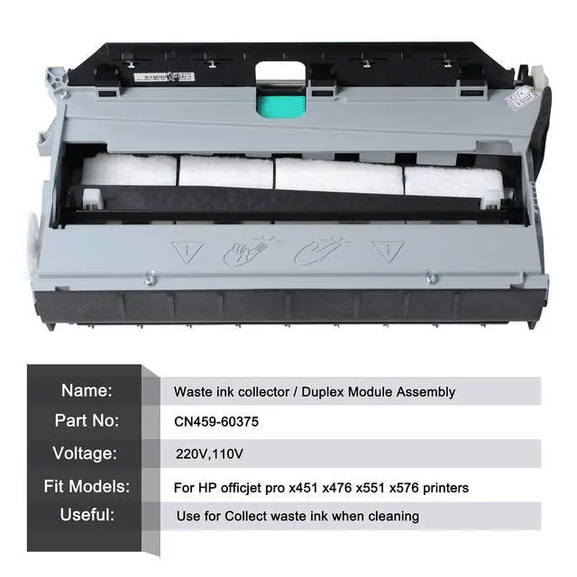HP PRINTER MODELS: Our printer replacement part (CN459-60375 duplex module) is Compatible with HP Officejet X Series PrinterFit for HP Officejet Pro X451dn X451dw X476dw X476dn X551dw X556dn Printer, Fit for HP PageWide 556xh X576dw X586dn 586dn 586z 586f 556 586 E55650 E58650 352dw 377dw 452dw 577dw 477dw P55250dw P57750dw printer ^^ MODEL NAMECN459-60375 CN598-67004 Duplex Unit Waste Ink Collection Unit /Maintenance Box Unit Parts 220V/110V ^^