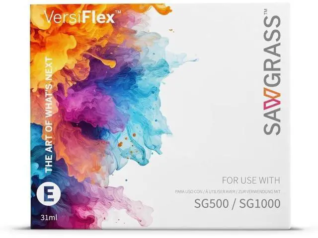 Exclusively designed for the entry-level professional, Sawgrass has you covered. ^^ Unleash Vibrant Colors & Soft Feel - VersiFlex Decoration Inks that deliver stunning, true-to-life colors with a soft touch. No more stiff, uncomfortable transfers for a professional finish - unlike DTF printing. ^^ Game-changing Innovation - VersiFlex 70910 inks exceed traditional sublimation ink. SubliJet and VersiFlex setups are not interchangeable. Using the wrong configuration may result in printer damage.
