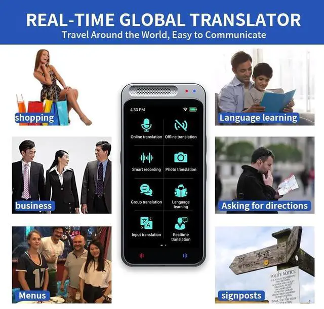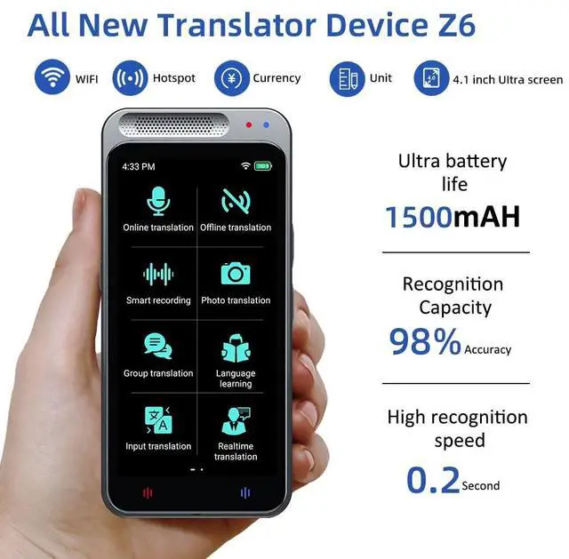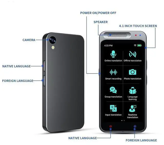 Instant real time, online and offline translation, This translator adopts the latest translation technology of the major search engines, supports instant voice translation, 138 different languages online translation, and 17 commonly used languages Offline translation, use anywhere and anytime ^^ HD Photo Translation, this device is equipped with 8 million high-definition cameras and advanced image recognition technology. Support photo translation up to 74 languages, makes it easier for you to travel. ^^ This translator is compact and lightweight, pocket size, easily to be packed. The 4 high-definition touchscreen allows you to easily read the translated text; you can also play the recorded translation, great for learning.