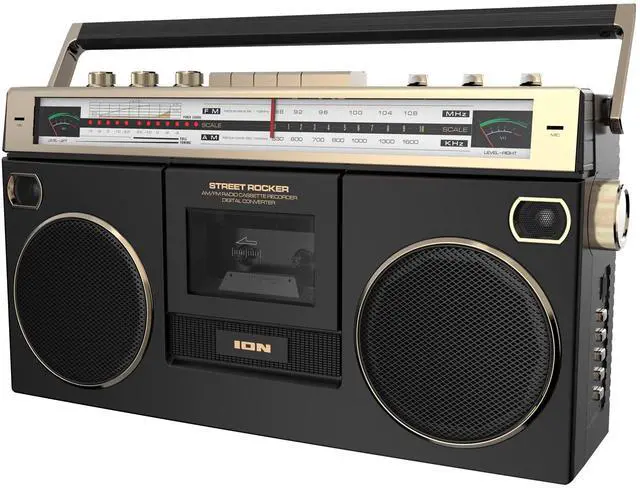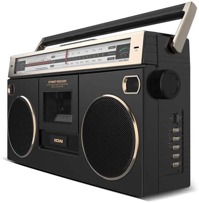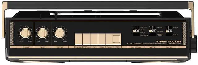 ENJOY GREAT STEREO SOUND FROM YOUR CASSETTE TAPES, RADIO OR STREAMING MUSIC Be honestyou still have that amazing collection of cassettes, dont you? All that great music. You just couldnt bring yourself to throw it away. Good decision! The Street Rocker Gold Series!! makes all your favorite old music sound brand-new again. This is a powerful, full-featured boombox in the classic fashion, just like you remember. It has a high-quality cassette tape player/recorder that plays your entire tape collection, plus you can make new recordings off the radio or with the built-in microphone.