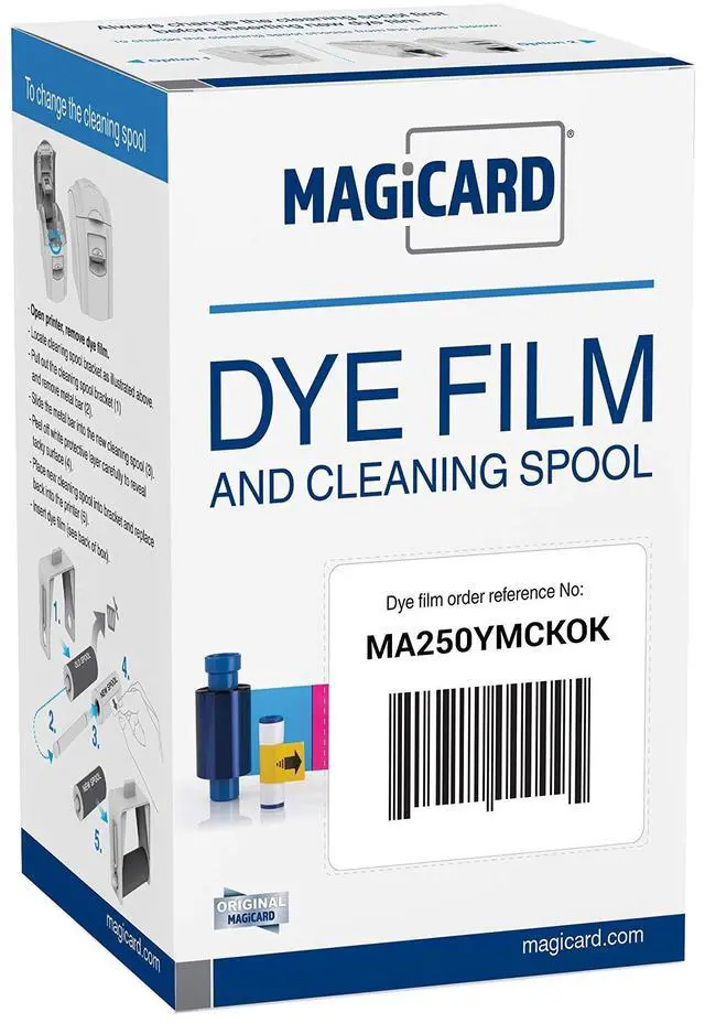 Full color 6-panel YMCKOK dye film for dual-sided printing ^^ Print full-color images on the front and one-color text or barcodes on the back ^^ Features drop-in dye film loading which provides hassle-free installation ^^
