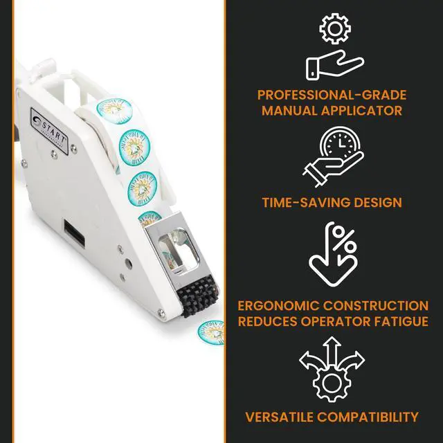 Precision Design: Patented dispensing mechanism provides accurate placement of small labels without custom tooled slots. Designed for detailed labeling tasks, inventory management, and small product identification in professional settings.