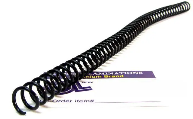 Coil binding is one of the most popular binding methods due to its professional appearance, lay-flat design and ability to flip pages 360 degrees. Spiral coil spine bindings are perfect for business proposals, annual reports, company presentations and any other book binding project. Akiles spiral binding coils are made of high quality PVC plastic filament. Extra long 36-inch spiral coil binding spines are long enough to trim to fit all binding edge spine sizes up to 36-inches. These binding coils have a 4:1 pitch (4-holes per inch) and are fully compatible with all 4:1 pitch coil binding machines on the market.