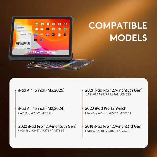 Compatibility: Perfectly designed for the 2024 iPad Air 13-inch (M2), 2025 iPad Air 13-inch (M3), as well as the 2022 iPad Pro 12.9-inch (6th Gen), 2021 iPad Pro 12.9-inch (5th Gen), 2020 iPad Pro 12.9-inch (4th Gen), and 2018 iPad Pro 12.9-inch (3rd Gen).