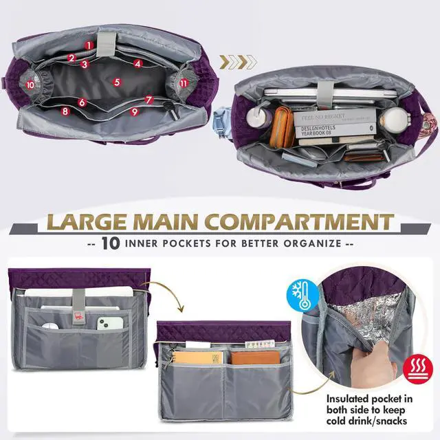 LARGE CAPACITY & MULTIPLE STORAGE- The large main compartment of this teacher laptop bag with 10 inner pockets could easily hold all your daily necessities/college supplies/teaching materials/medical supplies in an organized way. The padded laptop compartment of this teacher tote bag offers optimal protection, which can fit in a 15.6" laptop and a 12.9" iPad. Insulated pockets on both sides are designed for snacks or coffee storage and keep cold or warm for hours