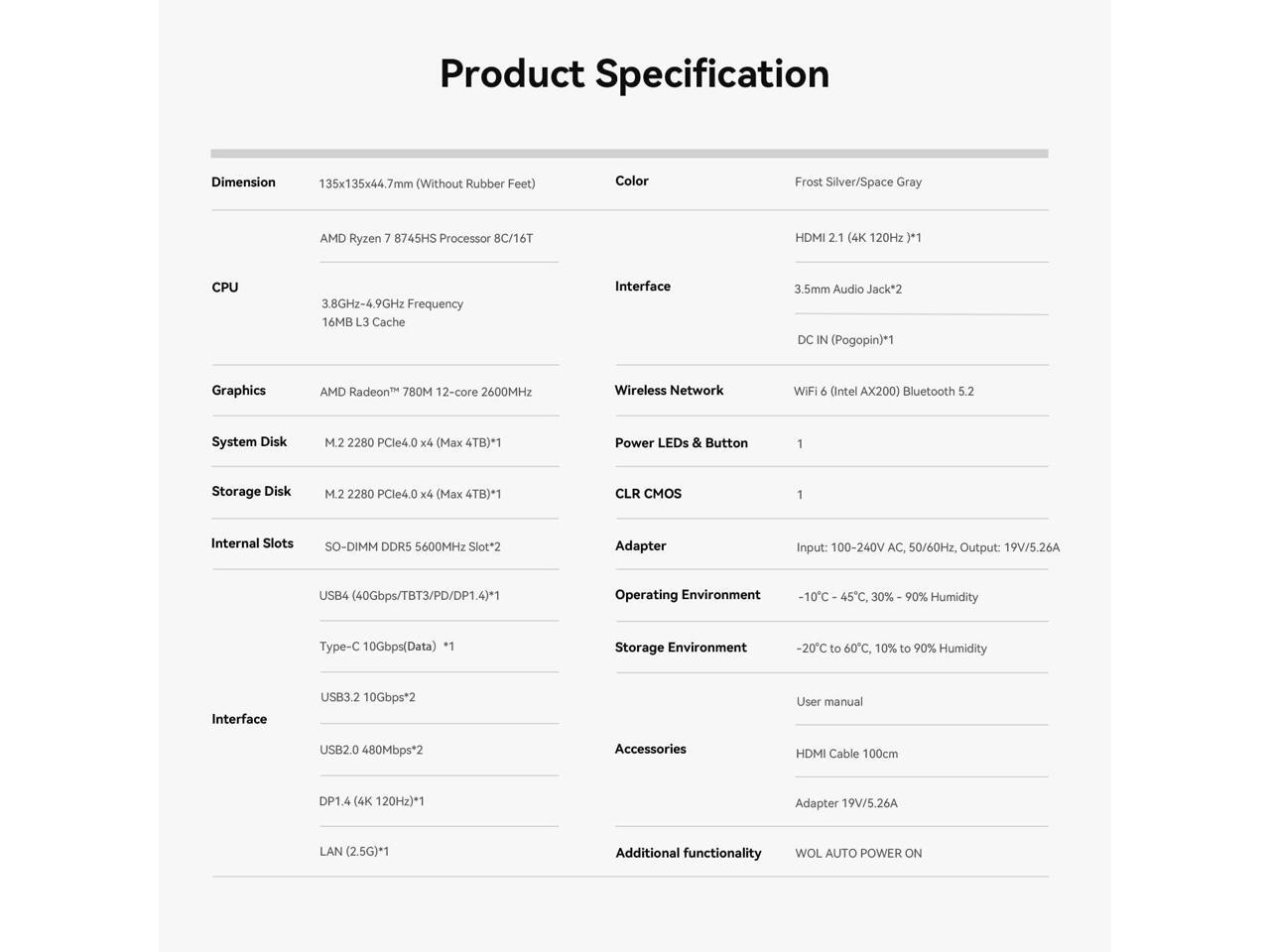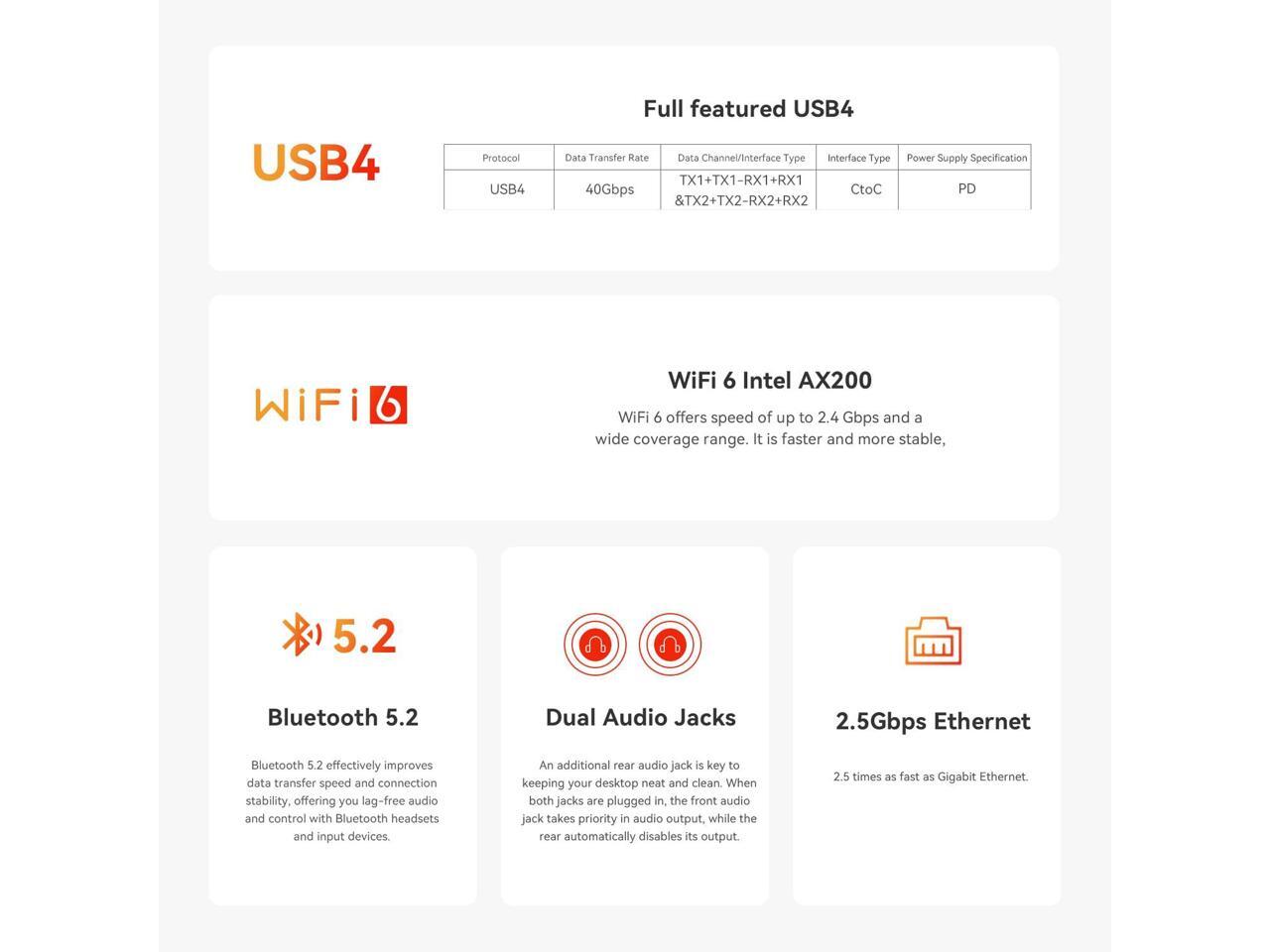 - [(Rich Interface )] Easy to setup and small in size. Beelink SER8 mini computer is equipped with 1x USB4, 1 x HDMI, 1 x DP, 1x type-c(data), 2x USB3.2, 2x USB 2.0, 1 x2.5g Gigabit Ethernet, 3.5mm Audio Jack. Supports WiFi 6 (802.11ax) , bluetooth 5.2.