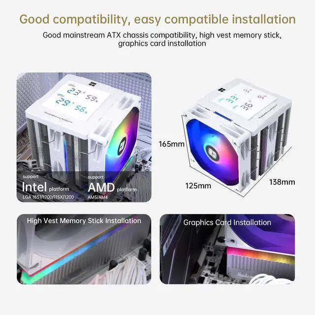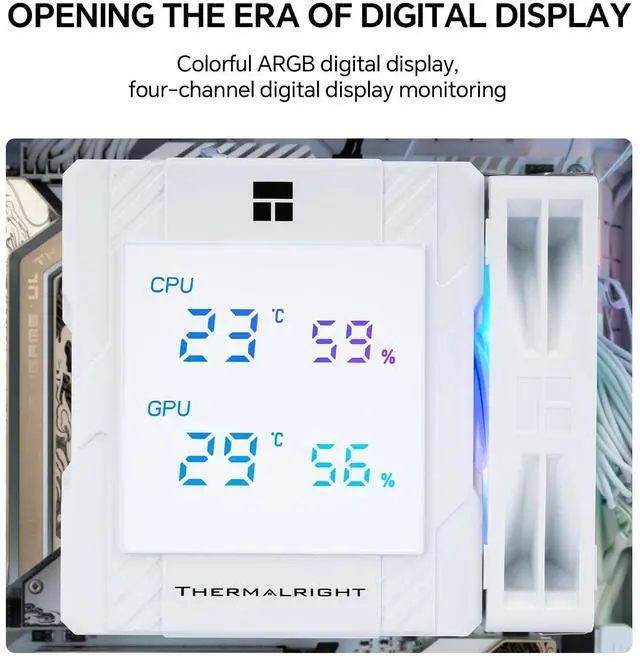 Peerless Assassin 120 Digital White ARGB CPU Air Cooler, Top Cover Digital Temperature Screen, 6 Heatpipes ^^ 1850RPM PWM Fans, for AM4/AM5, Intel LGA115X/1200/1700/1851 (PA120 ARGB Digital White)