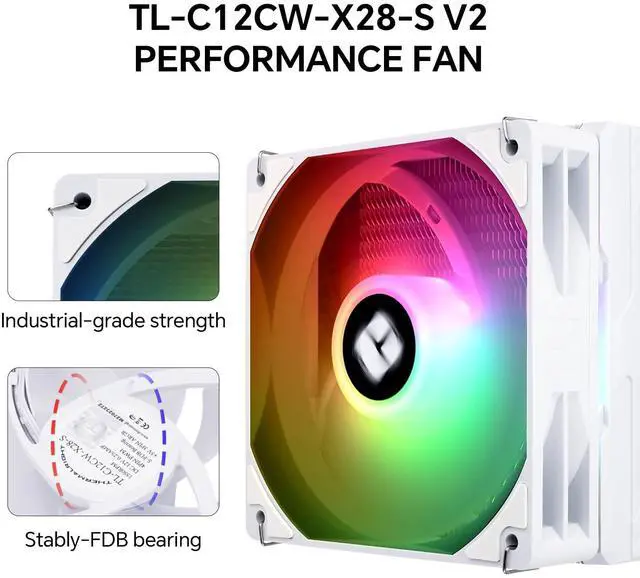 [28mm Dual Thickened PWM Fan] TL-C12CW-X28-S V2 Fan; Fan Size: 120x120x28mm (4.7x4.7x1.1 inches); Fan Speed (RPM): 1850rpm+-10%; Power Connector: 4Pin; Airflow: 88.89CFM(MAX); Noise Level <=25.6dB(A)