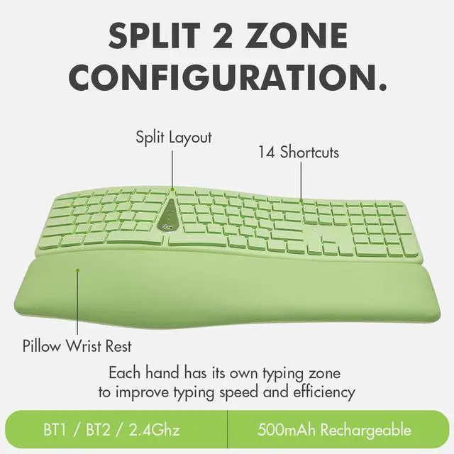 X9 Wireless Ergonomic Keyboard and Mouse Combo - Type Comfortably Longer - Ergo Split Keyboard with Soft Wrist Rest for PC, Mac, iOS, Android, Bluetooth/2.4G Rechargeable, Multi-Device - Green