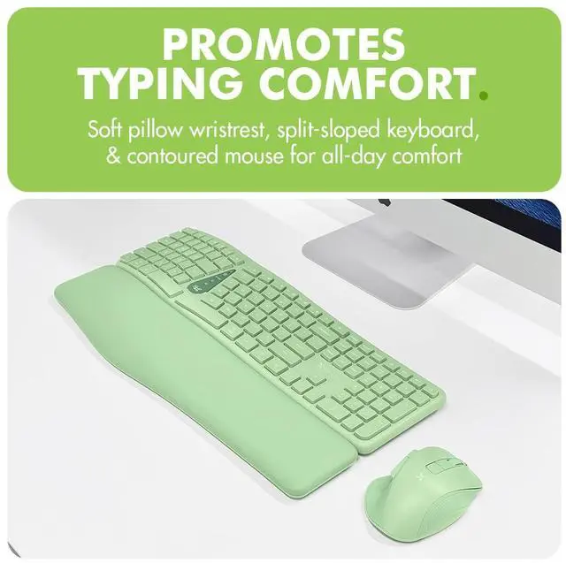 Designed for All-Day Comfort: The split keyboard, soft pillow wrist rest, and contoured mouse help reduce strain and improve comfort during long work sessions.