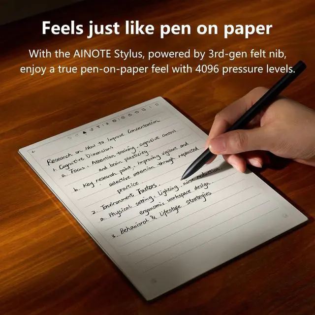 Paper-like WritingCrafted from premium materials, the pen refills deliver a natural, paper-like writing experience. Customize your handwriting with 8 refined brush styles available on the iflytek ainote 2 taking tablet interface.