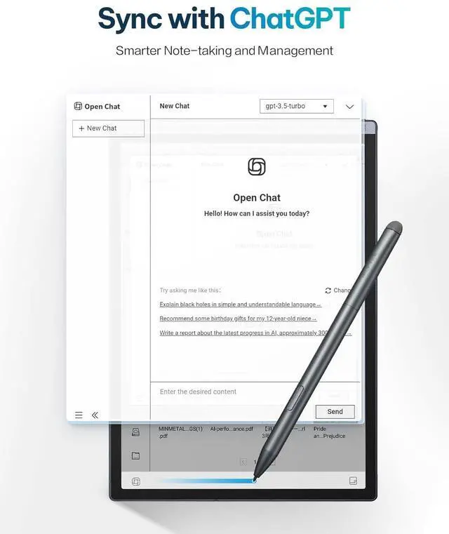 ^^ Powered by ChatGPTWith built-in ChatGPT, tackle study notes, meeting summaries, and writing tasks more efficiently. Get instant help organizing ideas, clarifying content, or drafting polished textall from this digital notebook. ^^ AI Notetaker & Schedule ManagementMark up handwriting supernote effortlessly with special star, triangle, and circle symbols using the stylus pen to automatically create to-dos and attention items. Manage your personal schedule and display weekly work reports with ease. A perfect gift for friends, colleagues and client. ^^ Cloud Sync with One DriveThis electronic notebook with pen features secure cloud sync and integration with Google Play, enabling access across multiple devices and safe storage of historical notes, ensuring your work is never lost.