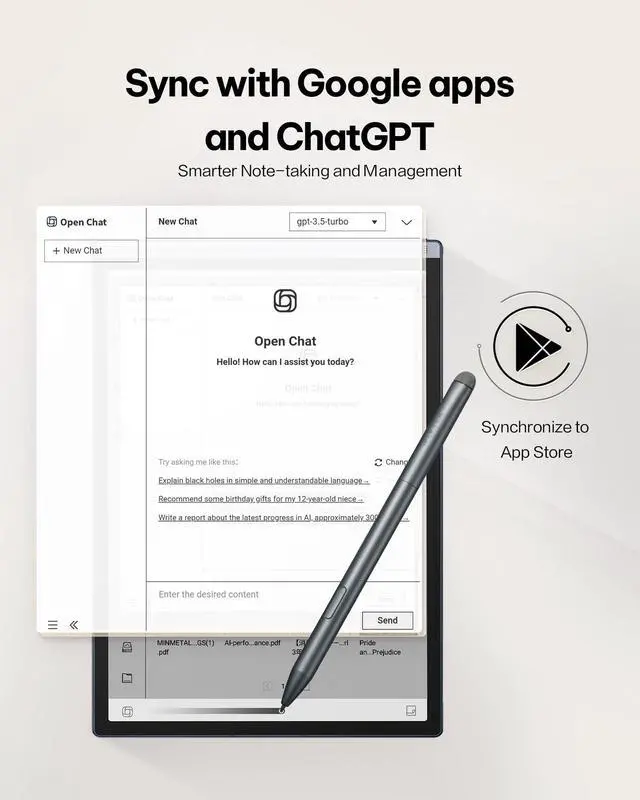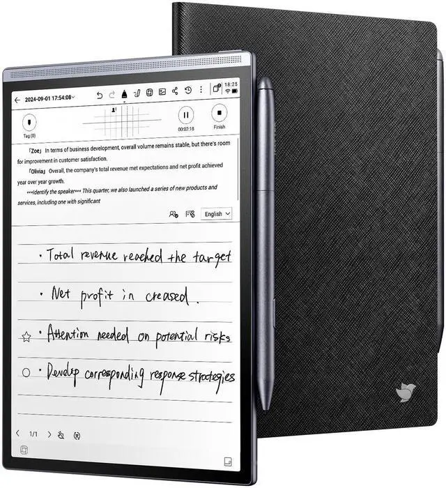 Please note: voice transcription and handwritten text conversion cannot be used simultaneously. Please wait for the ongoing transcription to finish before converting handwriting. ^^ Paper-Like Writing Experience 4, 096 pressure levels and near-zero latency on an 8.2 -inch E Ink screen replicate natural handwriting, making it comfortable for long writing sessions. ^^ AI Notetaker & Smart Planner Generates to-do lists and manages schedules automatically with intuitive AI features, turning your notes into actionable plans. ^^ Eye-Friendly Reading E Ink display with dual-color adjustable reading light for comfortable viewing in any environment perfect for reading PDFs, eBooks, and reference documents.