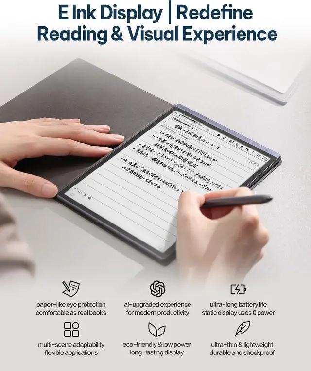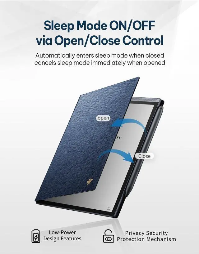 Auto Wake & Sleep Automatically wakes the note-taking tablet screen when opened and puts it to sleep when closed, maximizing battery efficiency.