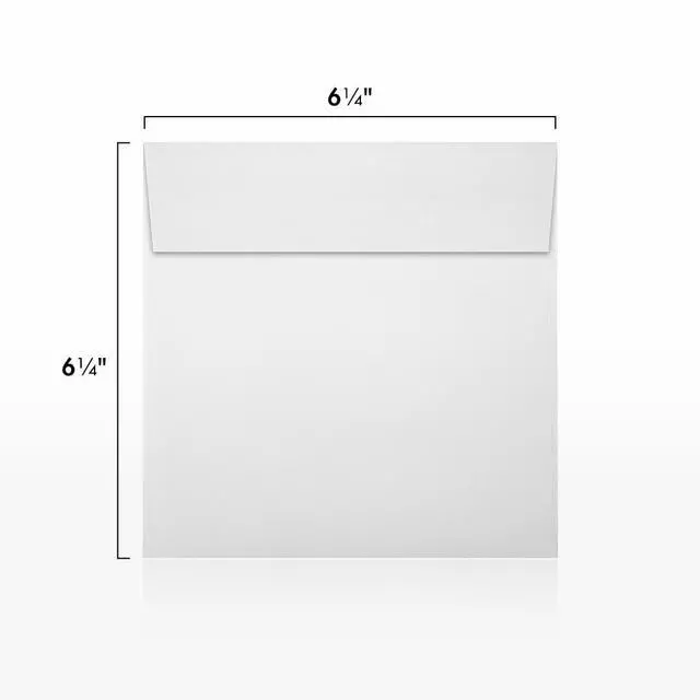 This sturdy and durable thickness is perfect for shipping long distances without bending or tearing. When printed on, these envelopes are complemented with a wide variety of ink colors. You wont have to worry about paper jams, tears, or ink smears with these envelopes. Theyre designed for compatibility with laser and inkjet home printers. These envelopes are also ideal for addressing notes and invitations by hand. Whether you use a gel pen or calligraphy pens, youll be impressed with the high-quality, smudge-proof paper. These square invitation envelopes measure 6 1/4 x 6 1/4 ( 158.75 mm x 158.75 mm).