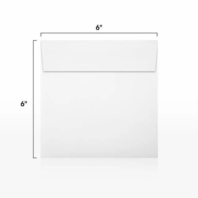 This sturdy and durable thickness is perfect for shipping long distances without bending or tearing. When printed on, these envelopes are complemented with a wide variety of ink colors. You wont have to worry about paper jams, tears, or ink smears with these envelopes. Theyre designed for compatibility with laser and inkjet home printers. These envelopes are also ideal for addressing notes and invitations by hand. Whether you use a gel pen or calligraphy pens, youll be impressed with the high-quality, smudge-proof paper. These square invitation envelopes measure 6 x 6 ( 152.4 mm x 152.4 mm).