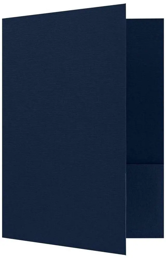 These folders come in thick, 100 lb. LUX Nautical Blue Linen cover stock that is durable and resistant to damage, protecting whatever you have inside and keeping it organized. We proudly offer these 9 x 12 (229 mm x 305 mm) folders in an extensive range of colors, including vibrant shades of green, blue, red, silver, and gold. In addition, we provide these stock folders in neutral and more classic colors and textures appropriate for more professional situations. Purchase a wide variety of colors so youll always have exactly what you need! You can choose between quantities of 25, 50, 100, and 250 premium cover-stock folders; no matter what the occasion, youll be able to supply the perfect number of business reports, school presentations, and more.