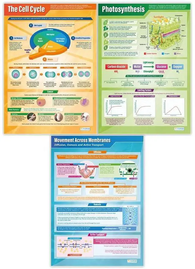 • Educational Charts Designed By Teachers This set of 13 biology posters was developed by educators to simplify complex life science topics through bold visuals and concise summaries. Each chart supports instruction in grades 710 and includes key concepts such as The Cell Cycle, Enzymes, Photosynthesis, DNA, and more. These colorful educational posters help students absorb challenging content while supporting various learning styles.