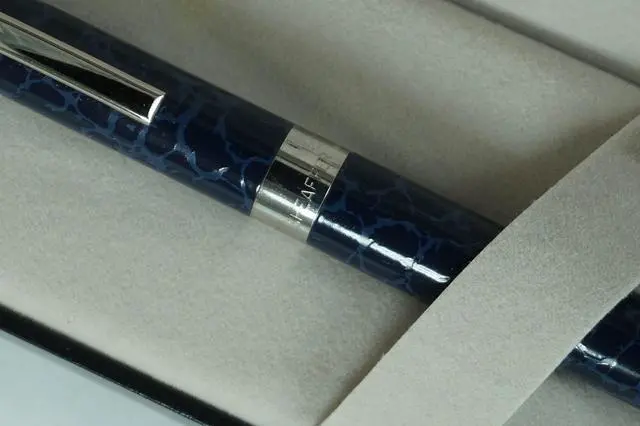 Sheaffer has created many iconic pen designs since the company was established in 1913 but the legacy look of leather stands out. For those who combine timeless elegance and modern day style with functionalities, there is the Legacy Heritage Look of Leather Re-assuring Blue barrel and Palladium Appointments Ballpoint pen. The pattern definitely evokes full grain patent finished leather, showing wide, large grain markings. Its distinct profile and signature Sheaffer design evoke a sense of true luxury. Recall the days when details made a difference as your fingers glide over every precise design element.