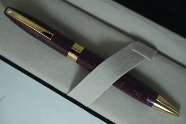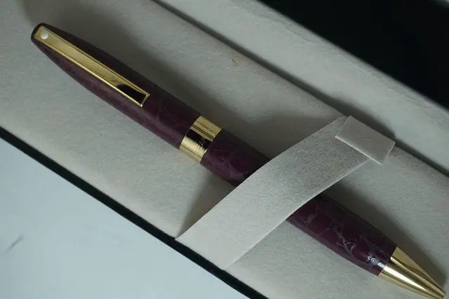 Sheaffer has created many iconic pen designs since the company was established in 1913 but the legacy look of leather stands out. For those who combine timeless elegance and modern day style with functionalities, there is the Legacy Heritage Look of Leather wine burgundy barrel and 22KT Gold Appointments Ballpoint pen. The pattern definitely evokes full grain patent finished leather, showing wide, large grain markings. Its distinct profile and signature Sheaffer design evoke a sense of true luxury. Recall the days when details made a difference as your fingers glide over every precise design element.