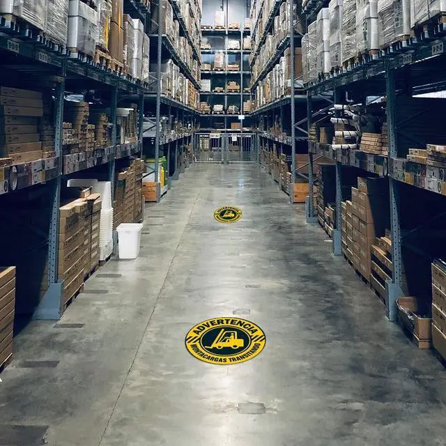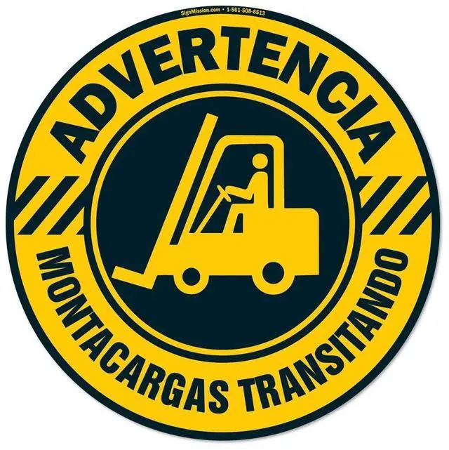 Advertencia Montacargas TransitandoSafety First UL Rated Anti-Skid Vinyl Floor Decal, 16" x 16" Mark your aisles, crosswalks, lanes and areas of caution with a floor decal that calls attention to everyone. Easily apply this floor decal to ensure the safety of your employees and customers with SignMissions best in-class floor decals.