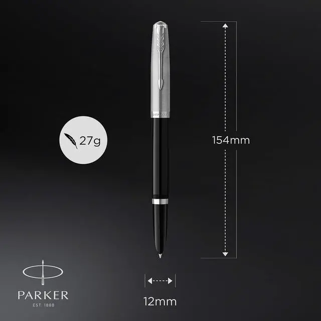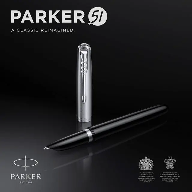 The Parker 51 is as groundbreaking today as it was when first launched in 1941. This unique writing instrument is inspired by the pen once hailed as the 'world's most wanted' retaining its distinctive streamlined silhouette and iconic hooded nib; yet is made for the future this pen is hand assembled and made from durable precious resin, benefitting from Parker's expertise and reputation for superior craftmanship. From conception to assembly, the attention to detail is second to none. The cap is decorated with a complementary metallic jewel and each finish is inspired by heritage colours of the past, a tribute to the original Parker 51 range.