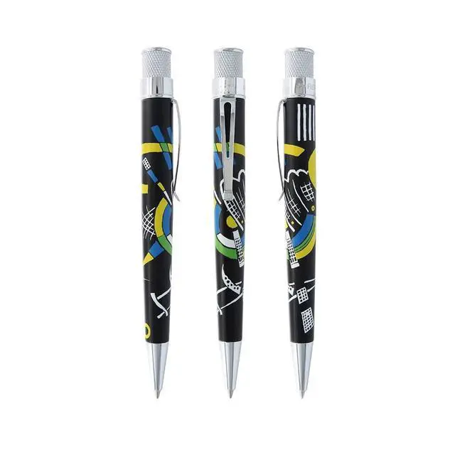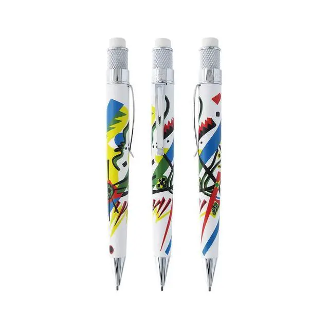 Metropolitan Museum of Art Kandinsky Set, Includes Tornado Rollerball Pen and Pencil. The Vasily Kandinsky Pen and Pencil set features this Russian artist's colorful abstract work from his Kleine Welten (Small Worlds) (1922) portfolio. Each writing instrument presents two bold works silk-screened with a matte finish and chrome accents. The MET Rollerball and 1.15 mm Pencil sets are packaged in a commemorative tube complete with extra lead, erasers, and a foldout print with more information on each design, artwork, and artist.