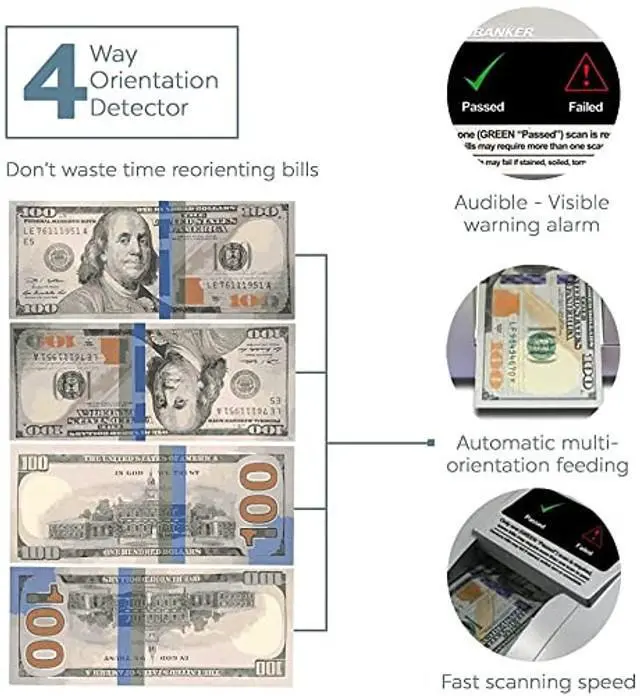 ORIENTATION: With the D470s 4-way orientation feature, save time by inserting your bills in any direction. ^^ 7-POINT AUTOMATIC DETECTION - IN LESS THAN 1
