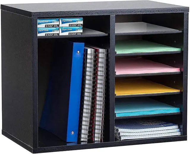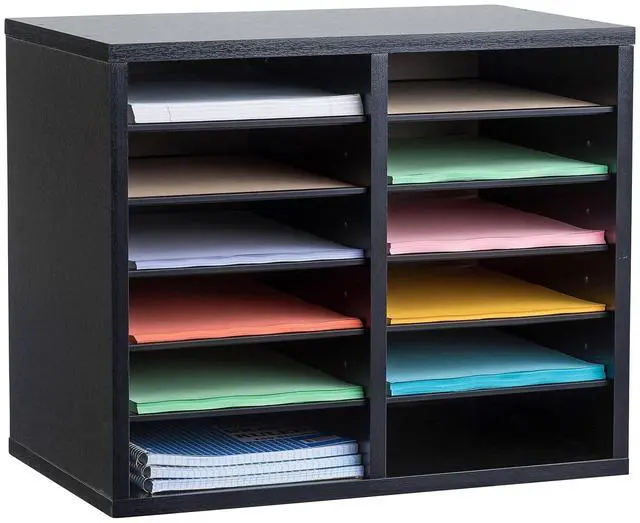 AdirOffice Wooden Adjustable Literature Organizer, 12 Compartment Office Mailbox, or Classroom Literature Organizer, Black