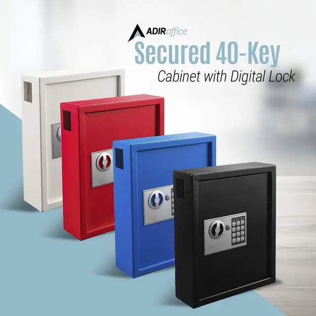 ^^ Secure Design: Offering enhanced security, this robust 40-Key Safe Box from AdirOffice has a programmable, simple-to-use electronic lock using a secret PIN code of 3-8 numbers. It also comes with two override keys, allowing you to maintain total control.