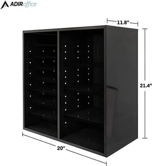 AdirOffice Wooden Adjustable organizerserature Organizer, 16 Compartment Office Mailbox, or Classroom Literature Organizer, Black