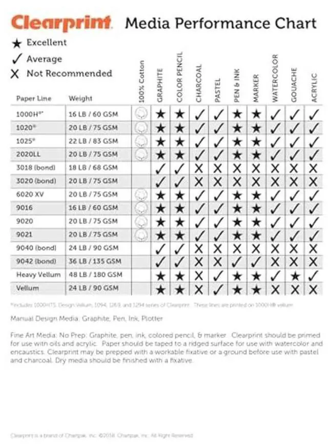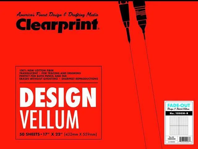 Use Clearprint 1000H Design Vellum Pad with Printed Fade-Out 8x8 Grid to produce professional drawings, tracings and artwork with translucent paper made of 100% new cotton fiber. This legendary Clearprint 1000H paper boasts acid-free archival quality, strength, erasibility without ghosting and redraw characteristics. 8x8 per inch faint blue grid is non-reproducible when scanned or photocopied. Pad is ideal for use with ink, fine art materials and traditional drafting products. It is transparentized without solvents to produce a permanent transparent drawing surface, which is also printable in laser and inkjet printers.