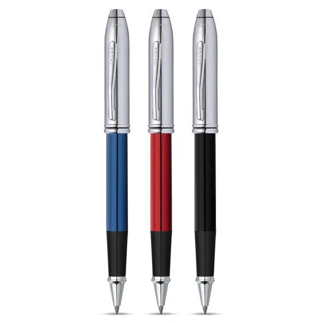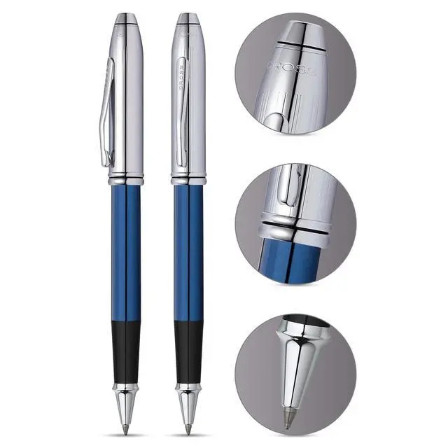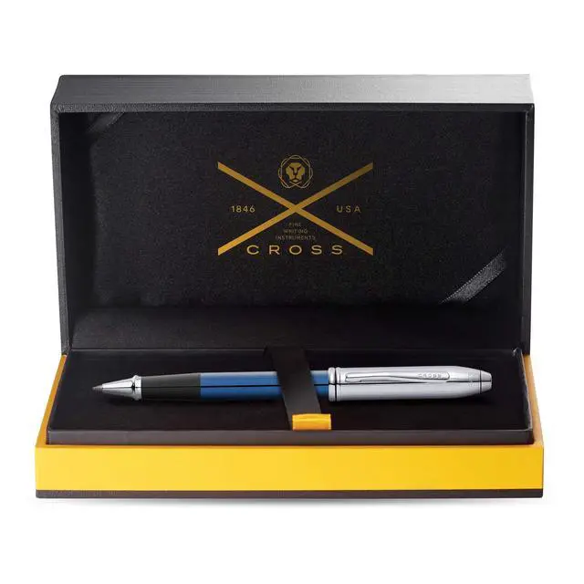^^ Box contents: Cross Townsend roller with blue chrome cap, including 8523 refill, in elegant luxury gift box.