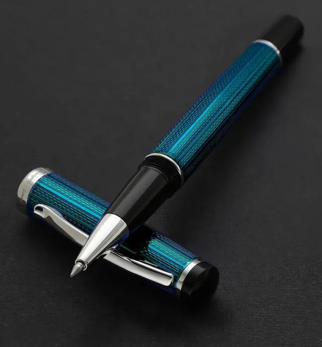 The colored finish of the pen utilizes a multi-layer high-gloss lacquering technique. After each layer of the lacquer is applied, the barrels of the pen are heat-dried and then manually polished. Lastly, multiple layers of clear translucent coating are applied to the body. The end result of these processes is a finish with a multitude of depth and hues, which even change slightly depending on the lighting. All paints and lacquers for these series are made in Japan. Each pen uses German-made parts. Quality inspection and additional assembly performed in US.