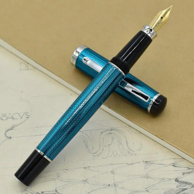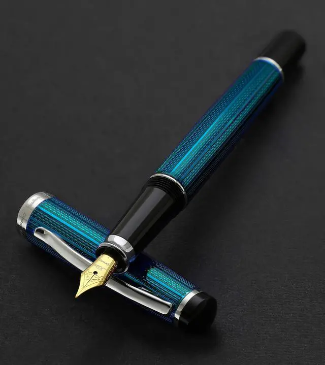 The colored finish of the pen utilizes a multi-layer high-gloss lacquering technique. After each layer of the lacquer is applied, the barrels of the pen are heat-dried and then manually polished. Lastly, multiple layers of clear translucent coating are applied to the body. The end result of these processes is a finish with a multitude of depth and hues, which even change slightly depending on the lighting. All paints and lacquers for these series are made in Japan. Each pen uses German-made parts. Quality inspection and additional assembly performed in US.